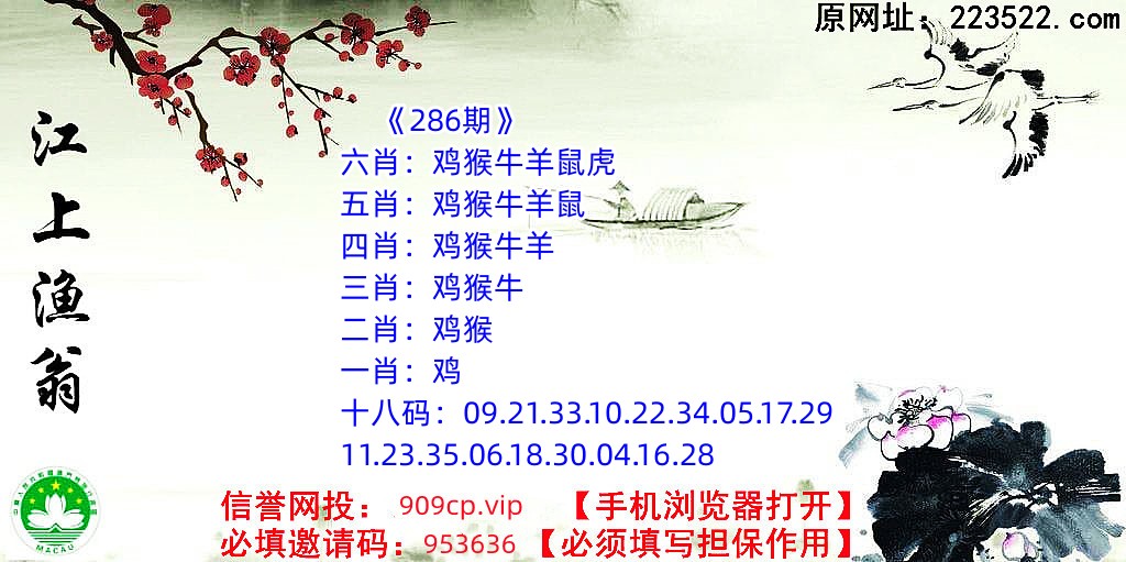 286期 绝杀三肖〔羊狗鸡〕开:?00准 |